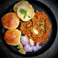 Paav bhaji is a street food from Maharashtra, India. Bhaji means vegetable thick curry in marathi and pav means soft bread roll. Bhaji is a spiced mixture of mashed vegetables in a thick gravy usually cooked in a flat iron pan and served with hot paav lightly toasted with butter. Read More ...